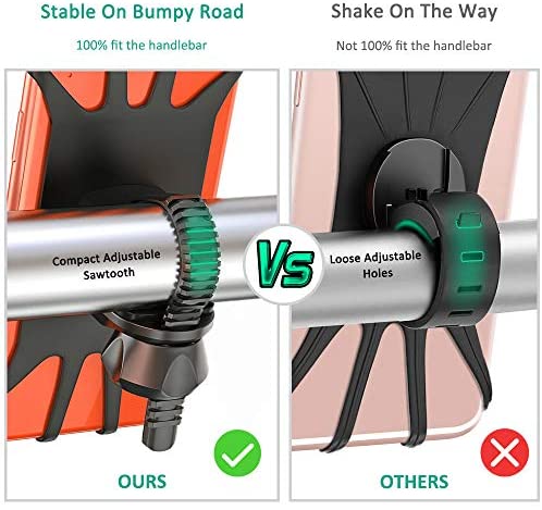 ☞Stable On Bumpy Road: Unlike other bicycle holders with loose adjustable holes which can only be sized according to the position of the holes, they often cause instability. Our adjustable belt with close thread and nut design firmly locks the handlebars. Even if you are driving on a rough road, there is no shake.