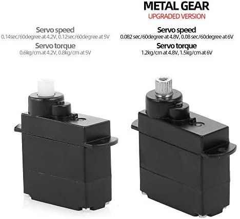 Servo torque: 1.2kg/cm at 4.8V, 1.5kg/cm at 6V