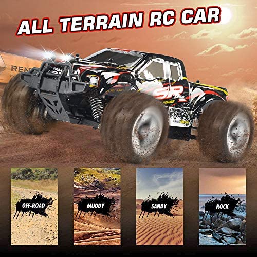 🚚SUITABLE FOR All TERRAIN🚚 The 4wd rc car is equipped with 4-Wheel Drive System and Rubber Tires. It can easily maneuver through all rough terrain, such as grass, sand,full of rocks ground,wet mud basin, rugged roads, gravel, tree roots or snow.