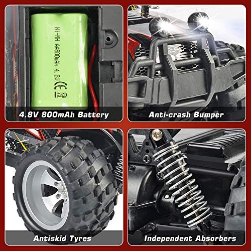 🚚 ANTI-CRASH DURABLE CAR BODY🚚 Body and bumper are made of durable materials, protecting the components safe. 4 independent suspension absorbers largely reduce shock to the car, running fast and stable on rough roads.
