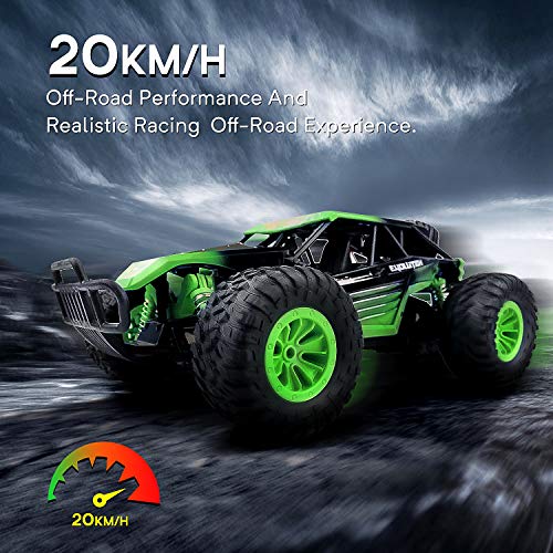 Excellent Off-Road Performance: This remote-control car with a powerful motor which provides strong power torque and off-road capability to race on multi-terrain easily and stably at a high speed. (The speed reaches up to 20-25 KM/H)