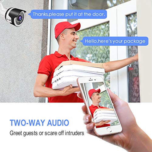 【2-Way Audio 】This HD Security Camera offers convenient two-way audio communication,built in with a mic and speaker,You can answer, welcome guests or deterrent alarm can get rid of unwanted guests with ease!
