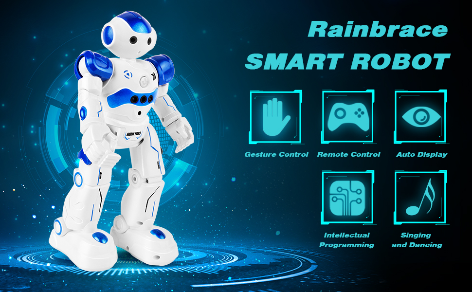 Rainbrace robot toys uses advanced technology, it sings, dances, and can be controlled and programmed by the included remote, this could be a perfect gift for 3-12 years old boys girls.