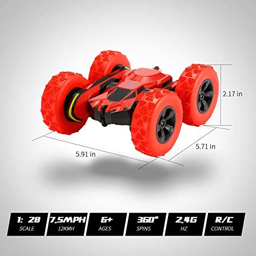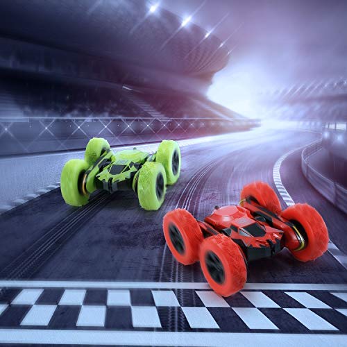 【Easy to Master and Control】The remote controller works flexible with this 2.4GHz anti-interference control frequency, two powerful motors, 50 Meters long control distance, suitable multiple RC Cars to racing game together at the same time. The strong horsepower makes the stunt car runs pretty fast and do cool flipping and spinning actions.