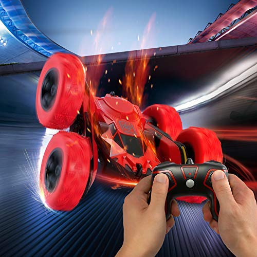 【Rechargeable Battery Included】The remote control stunt car toy is equipped 4.8V “AAA” 700mAh for Vehicle(included) with USB cable (included) and 2*1.5v”AA” for remote controller(included). The Vehicle battery can be recharged, super fun car with great stunts.
