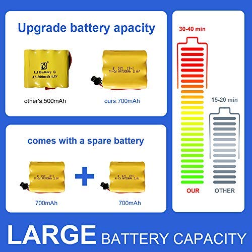 【Large capacity battery】 2 x 3.6V 700 mAh rechargeable batteries for car, can be played about 30-40 minutes each battery.