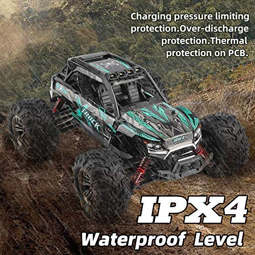 This RC Truck is equipped with waterproof, full-vehicle transmission bearings, suspension system, rubber tires, and four wheel independent.