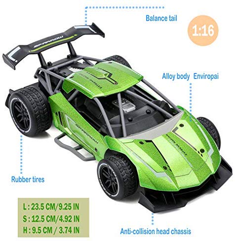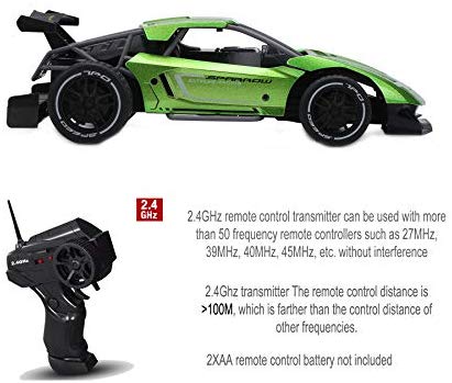 1.toy cars has alloy body and non-toxic ABS plastic tires, The body lines and logo printed are fashionable,1:16 Scal(Size 24 * 13* 7.5cm)bigger lamborghini remote control car is the best gift for 5 6 7 8 9 10 11 12 year old boy .You not only play with it using the remote control, but also place it as a exhibit on display shelf. Perfect for Christmas gift 2:15km/h High Speed RC Truck,It simulates a really powerful engine 4WD easy to control and the car responds well,the Remote Control car with 2 Rechargeable Batteries 3.rc cars for racing, 2.4Ghz frequency means that more than 10 can be raced together without interference. This is not possible when buying cars on 27Mhz or 40Mhz which is the normal standard. The perfect individual gift or gift for two, three, four or more than ten! 4.The tough irregular tires provide a strong surface grip,The race car not only works well on smooth surface, but also outside without any problem running on beach, carpet,tile,open road,grass, mud, etc. 5:Full functions of cars: pistol grip style transmitter. Full function of forward/reverse/left/right and stop. Package Includes: 1 X 1/16 Scale 4WD Electric Power Remote control cars lamborghini 1 X Complete 2.4GHz 2-channel Radio control (2pcs of AA size Batteries not supplied) 2 X Battery For Cars 1 X USB Charger Original packing box