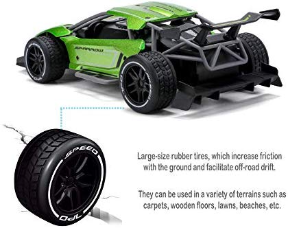 4:The tough irregular tires provide a strong surface grip,The race car not only works well on smooth surface, but also outside without any problem running on beach, carpet,tile,open road,grass, mud, etc.
