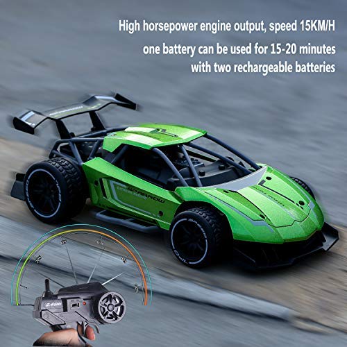 2: 15km/h High Speed RC Truck,It simulates a really powerful engine 4WD easy to control and the car responds well,the Remote Control car with 2 Rechargeable Batteries