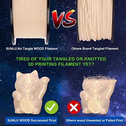 【SUNLU 1KG WOOD 1.75mm is Less-tangle and Easy to Use】 – Full mechanical winding and strict manual examination, which guarantee the WOOD filaments tidy and easy to be fed;