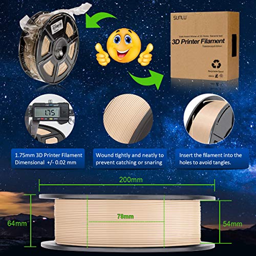 【SUNLU WOOD 3D Filament Dimensional Accuracy & Consistency】 – SUNLU 3D filament guarantee these WOOD filaments of 1.75 mm diameter, dimensional accuracy + / – .02 mm;