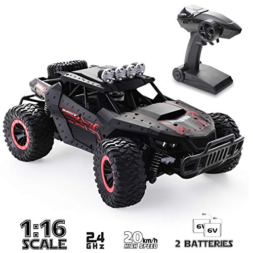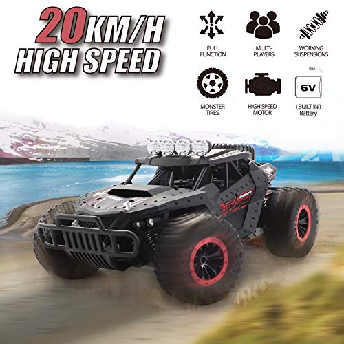Packed with 2 rechargeable battery, increase the runtime of your offroad rc car with a battery that will go the distance! Extended play time up to 30 minutes; RTR rc car for grass, sand and strong climbing ability for rock crawling which provides excellent entertainment performance.