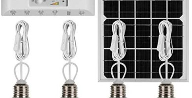 YINGHAO Upgraded 12W Solar Panel with 4 Bulbs Solar LED Lighting System & Phone Charger with 4 Imported LED Lights, 12W Solar Panel Charge Controller, USB Port with Cell Phone Chargers Included