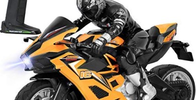 pop mart Remote Control Motorcycle Toy Stunt Performing Car Toys Rechargeable Yellow RC Motor Bike Safe & Durable Birthday Xmas Gift for Kids Boys Girls