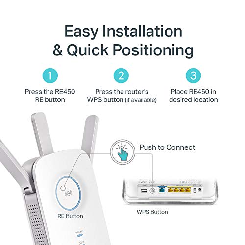 Extend the range of Your Wi Fi with the dual band RE450, compatible with any type of Router / Gateway / Access Point (2.4GHz 450Mbps / 5GHz 1300Mbps)