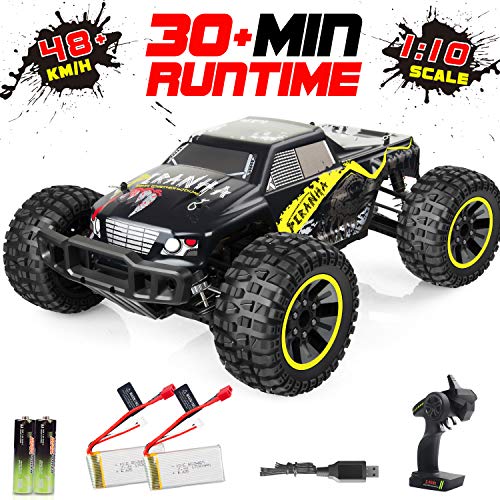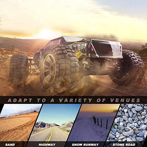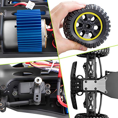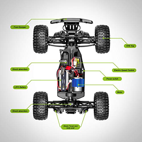 Strong power and 4-wheel drive: strong power makes the RC truck easy to run on rugged roads or off road without effecting its performance. Super strong anti-collision structure and 4WD makes RC Buggy possible to drive on any road condition without getting stuck on larger obstacles along the way. It can be play in every terrain: dirt, sand, Rock or mud because of its realistic all-terrain tires with foam inserts.
