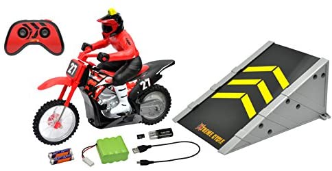 Now kids can kick it up a notch with Xtreme Cycle Moto-Cam which features an awesome built-in helmet camera! With Xtreme Cycle Moto-Cam, young cyclists can capture flips, tricks and sharp turns just like they do in extreme cycling! The patented gyroscopic stabilization system is made up of a flywheel mounted in the rear, as well as an all four bar linkage steering system. This system allows for ramp jumping, driving on various terrains, and even recovering from crashes. The cycle is specially designed to always right itself after it falls so it has non-stop action and has front and rear shock system to absorb bumps and rocky terrain. The remote control not only steers the cycle but it also allows cycle enthusiasts to start and stop the video at any time – even in mid-jump! Moto-Cam has 640×480 VGA resolutions and allows kids to record video at 30 frames per second and store 90 minutes of video. The set includes the cycle with Moto-Cam, a remote control, 12″ USB cable to download and share video online or watch on TV, stunt ramp and a removable 4GB SD card. 9V rechargeable and 2 AA batteries included! Ages 8+.